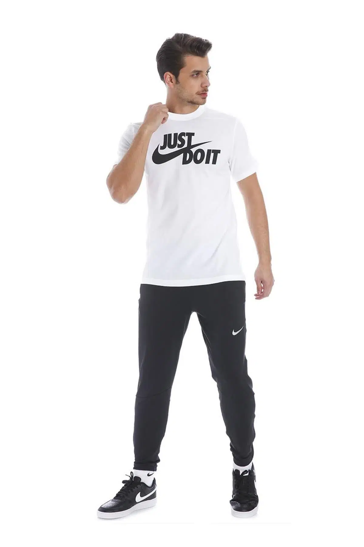 Siyah rengi ve ikonik “Just Do It” Swoosh logosu, klasik Nike stilini modern bir görünümle birleştirir. Regular fit kesimi, hareket özgürlüğünü artırır ve farklı kombinlerle rahatlıkla uyum sağlar. Kısa kollu tasarımı, sıcak havalarda veya antrenmanlarda maksimum konfor sunar.